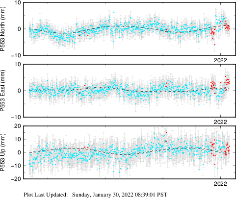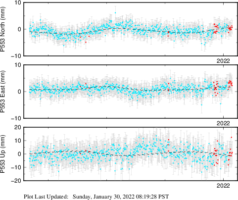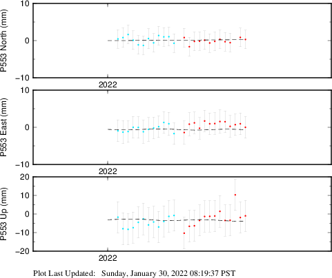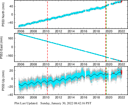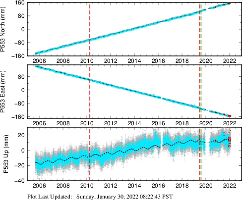 | Decimal date | N offset (mm) | N uncertainty (mm) | E offset (mm) | E uncertainty (mm) | U offset (mm) | U uncertainty (mm) | Type | Earthquake magnitude | Earthquake information | Distance from epicenter (km) | |