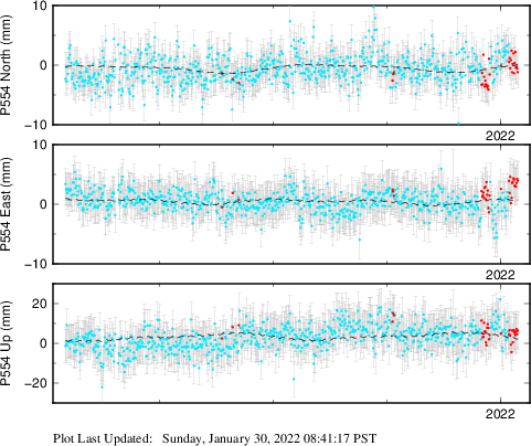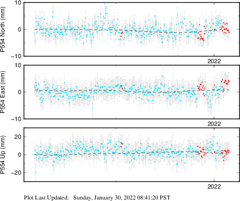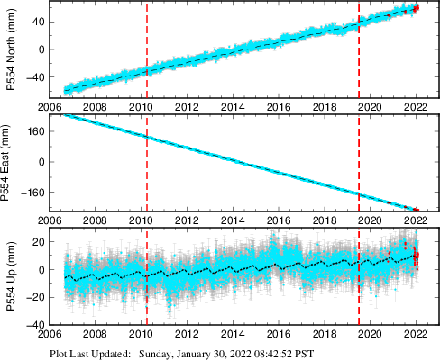 | Decimal date | N offset (mm) | N uncertainty (mm) | E offset (mm) | E uncertainty (mm) | U offset (mm) | U uncertainty (mm) | Type | Earthquake magnitude | Earthquake information | Distance from epicenter (km) | |