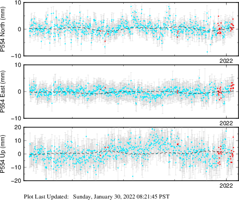 These results are preliminary. The station positions are unchecked and should not be used for any engineering applications. There may be errors in the antenna heights. The velocities are very dependent on the length of the span of observations. The presence of outliers (errant observations) sometimes contaminates the velocities.