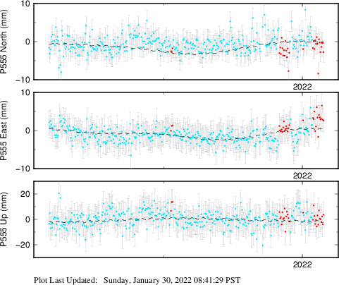 | Decimal date | N offset (mm) | N uncertainty (mm) | E offset (mm) | E uncertainty (mm) | U offset (mm) | U uncertainty (mm) | Type | Earthquake magnitude | Earthquake information | Distance from epicenter (km) | |