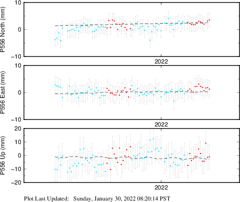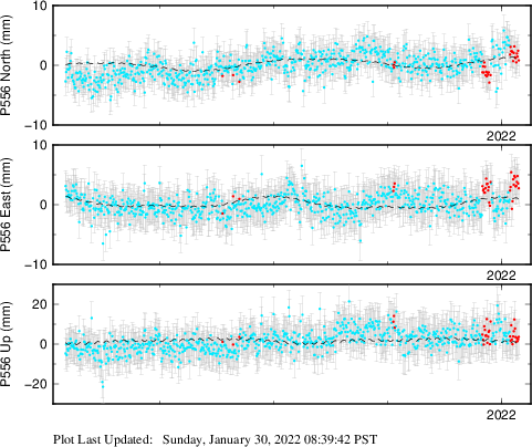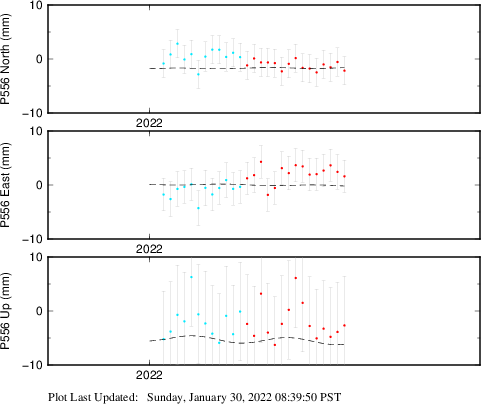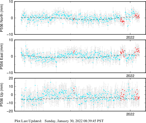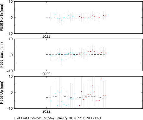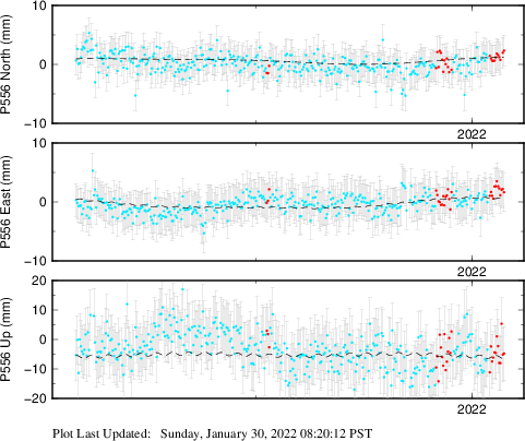 | Decimal date | N offset (mm) | N uncertainty (mm) | E offset (mm) | E uncertainty (mm) | U offset (mm) | U uncertainty (mm) | Type | Earthquake magnitude | Earthquake information | Distance from epicenter (km) | |