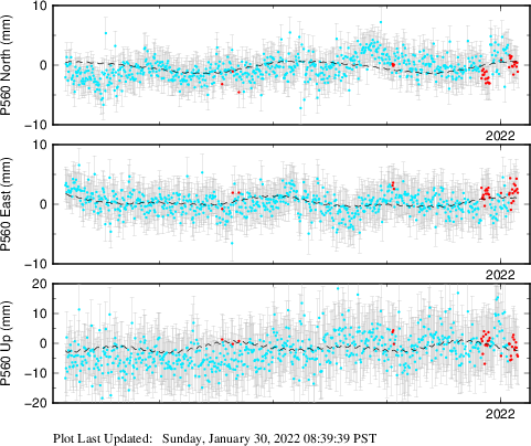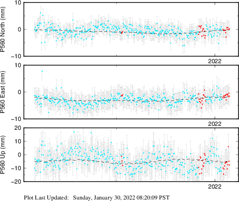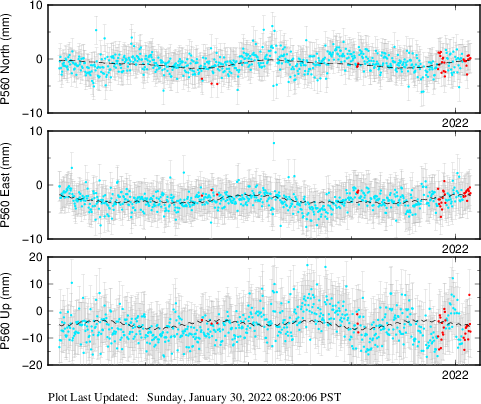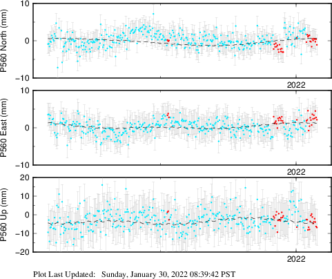 These results are preliminary. The station positions are unchecked and should not be used for any engineering applications. There may be errors in the antenna heights. The velocities are very dependent on the length of the span of observations. The presence of outliers (errant observations) sometimes contaminates the velocities.