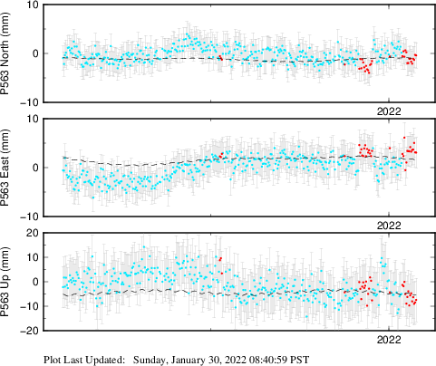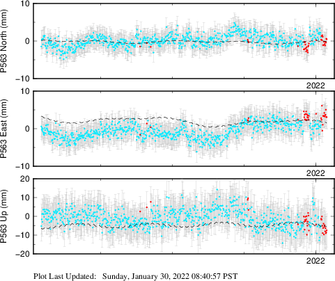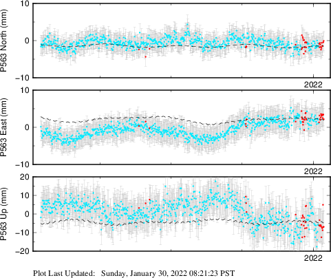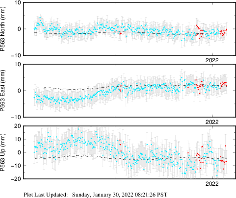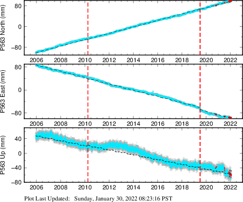 These results are preliminary. The station positions are unchecked and should not be used for any engineering applications. There may be errors in the antenna heights. The velocities are very dependent on the length of the span of observations. The presence of outliers (errant observations) sometimes contaminates the velocities.