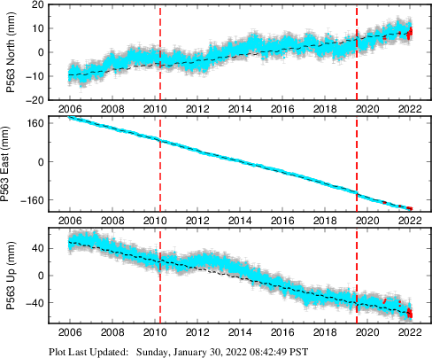 | Decimal date | N offset (mm) | N uncertainty (mm) | E offset (mm) | E uncertainty (mm) | U offset (mm) | U uncertainty (mm) | Type | Earthquake magnitude | Earthquake information | Distance from epicenter (km) | |