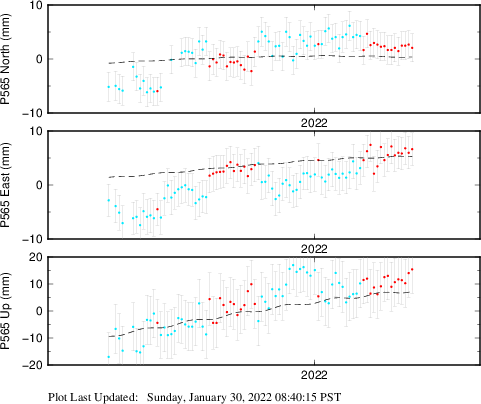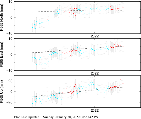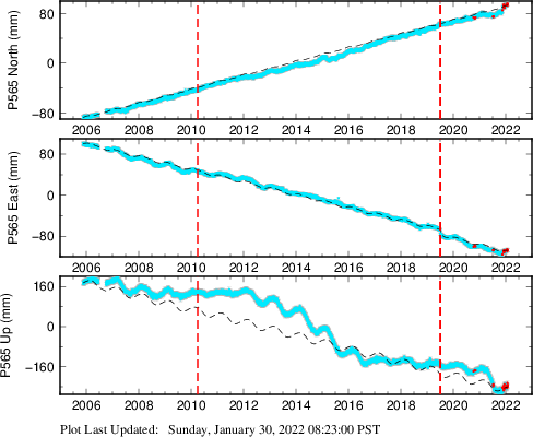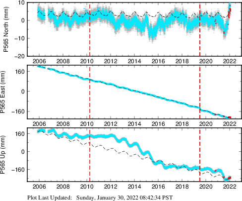 These results are preliminary. The station positions are unchecked and should not be used for any engineering applications. There may be errors in the antenna heights. The velocities are very dependent on the length of the span of observations. The presence of outliers (errant observations) sometimes contaminates the velocities.