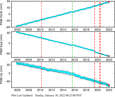 | Decimal date | N offset (mm) | N uncertainty (mm) | E offset (mm) | E uncertainty (mm) | U offset (mm) | U uncertainty (mm) | Type | Earthquake magnitude | Earthquake information | Distance from epicenter (km) | |