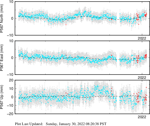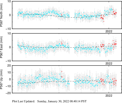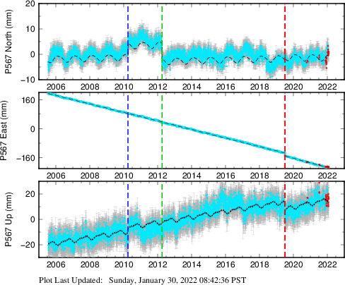 | Decimal date | N offset (mm) | N uncertainty (mm) | E offset (mm) | E uncertainty (mm) | U offset (mm) | U uncertainty (mm) | Type | Earthquake magnitude | Earthquake information | Distance from epicenter (km) | |