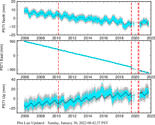 | Decimal date | N offset (mm) | N uncertainty (mm) | E offset (mm) | E uncertainty (mm) | U offset (mm) | U uncertainty (mm) | Type | Earthquake magnitude | Earthquake information | Distance from epicenter (km) | |