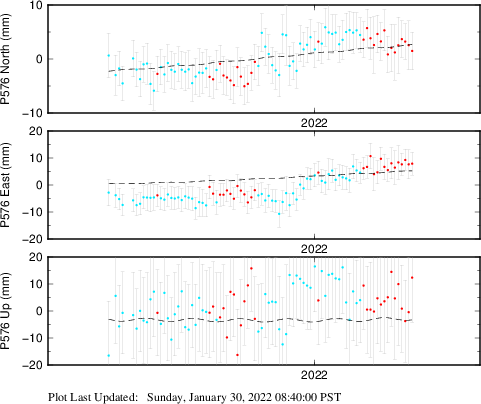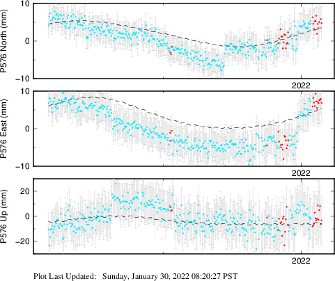 | Decimal date | N offset (mm) | N uncertainty (mm) | E offset (mm) | E uncertainty (mm) | U offset (mm) | U uncertainty (mm) | Type | Earthquake magnitude | Earthquake information | Distance from epicenter (km) | |