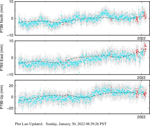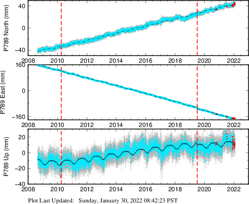 | Decimal date | N offset (mm) | N uncertainty (mm) | E offset (mm) | E uncertainty (mm) | U offset (mm) | U uncertainty (mm) | Type | Earthquake magnitude | Earthquake information | Distance from epicenter (km) | |
