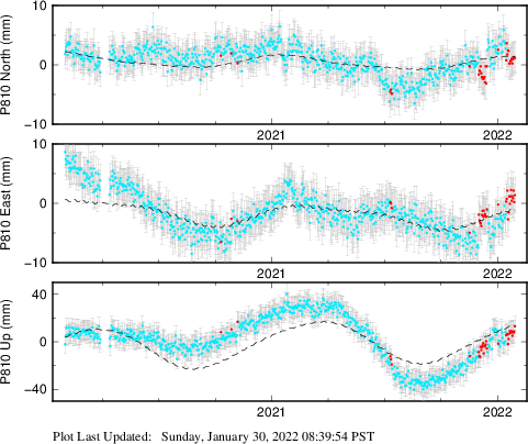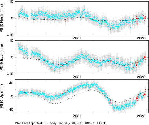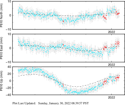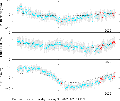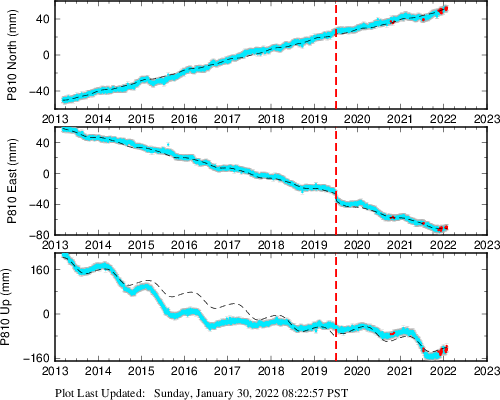 These results are preliminary. The station positions are unchecked and should not be used for any engineering applications. There may be errors in the antenna heights. The velocities are very dependent on the length of the span of observations. The presence of outliers (errant observations) sometimes contaminates the velocities.
