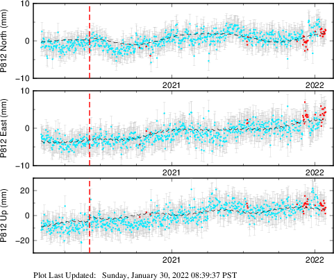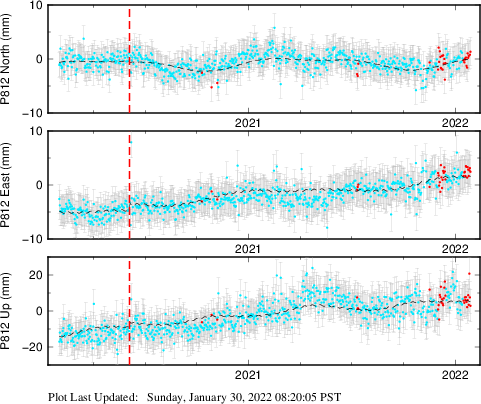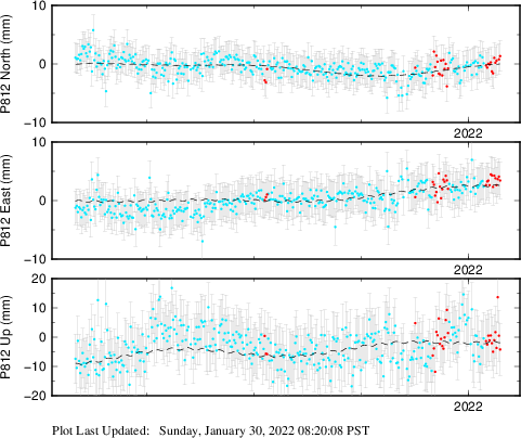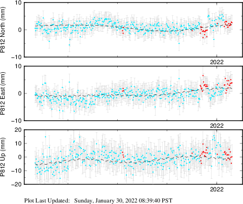 These results are preliminary. The station positions are unchecked and should not be used for any engineering applications. There may be errors in the antenna heights. The velocities are very dependent on the length of the span of observations. The presence of outliers (errant observations) sometimes contaminates the velocities.