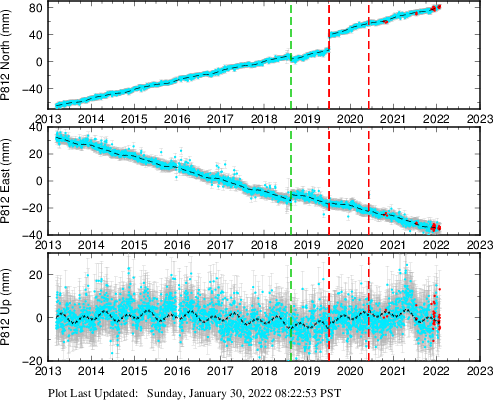 | Decimal date | N offset (mm) | N uncertainty (mm) | E offset (mm) | E uncertainty (mm) | U offset (mm) | U uncertainty (mm) | Type | Earthquake magnitude | Earthquake information | Distance from epicenter (km) | |