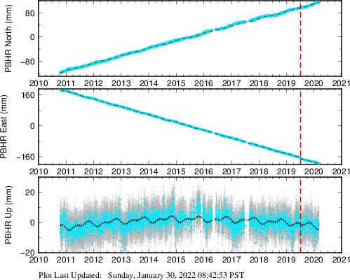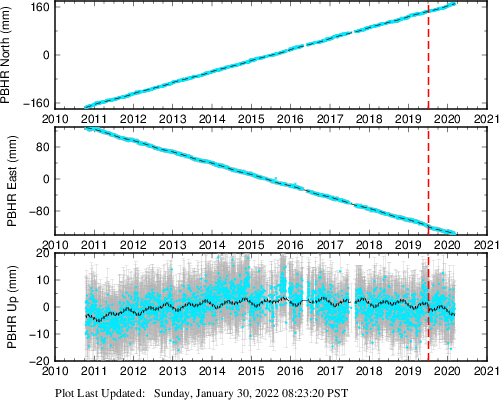 These results are preliminary. The station positions are unchecked and should not be used for any engineering applications. There may be errors in the antenna heights. The velocities are very dependent on the length of the span of observations. The presence of outliers (errant observations) sometimes contaminates the velocities.