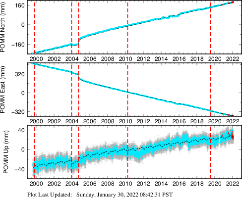 | Decimal date | N offset (mm) | N uncertainty (mm) | E offset (mm) | E uncertainty (mm) | U offset (mm) | U uncertainty (mm) | Type | Earthquake magnitude | Earthquake information | Distance from epicenter (km) | |