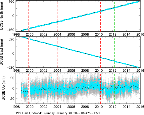 These results are preliminary. The station positions are unchecked and should not be used for any engineering applications. There may be errors in the antenna heights. The velocities are very dependent on the length of the span of observations. The presence of outliers (errant observations) sometimes contaminates the velocities.