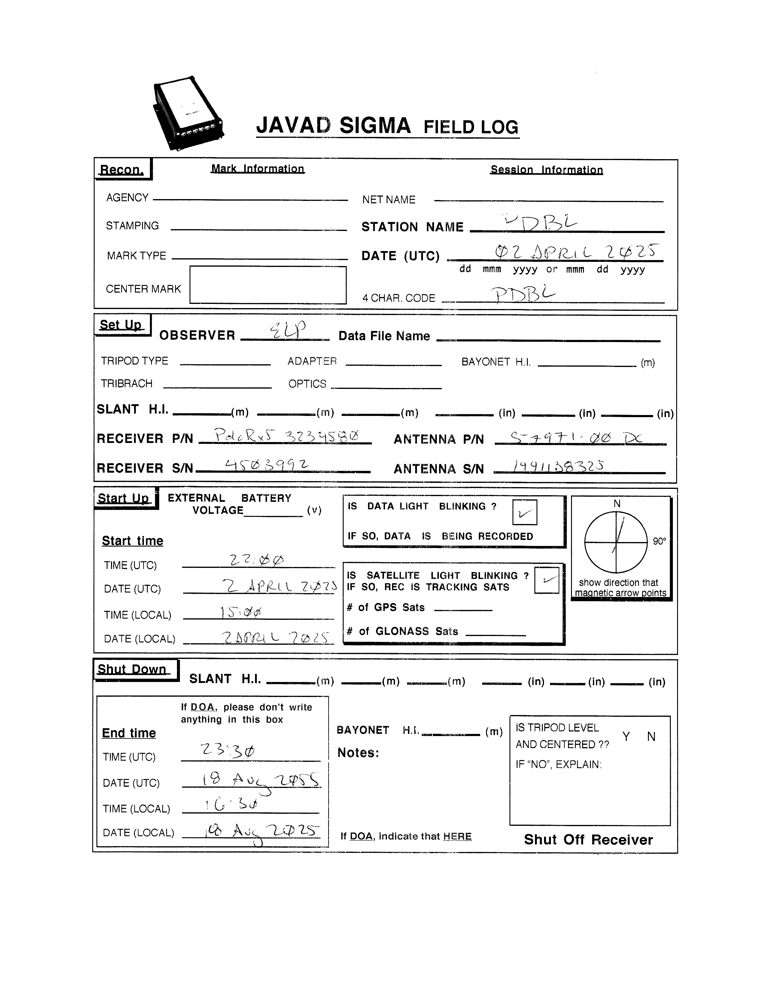 Station PDBL Field Logs